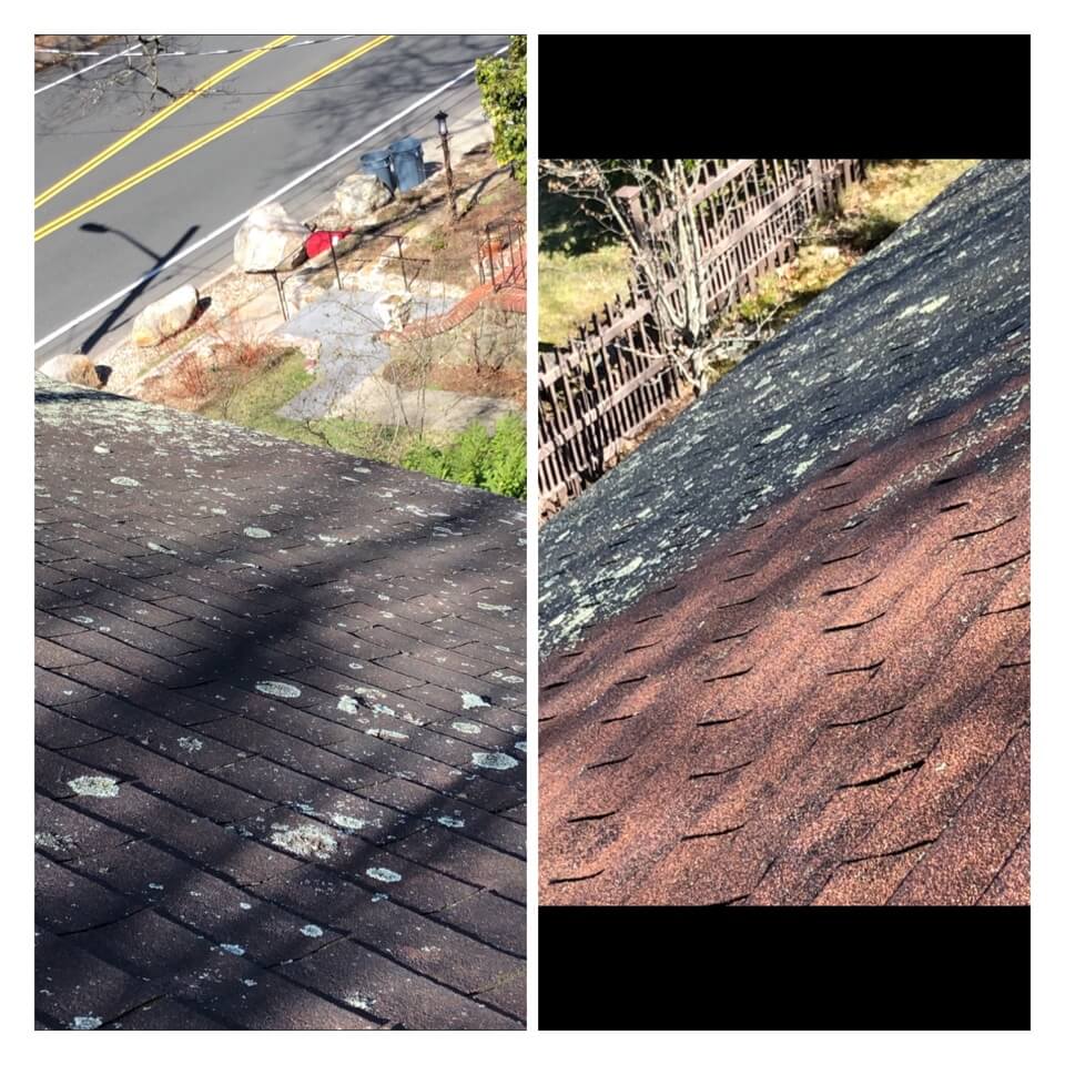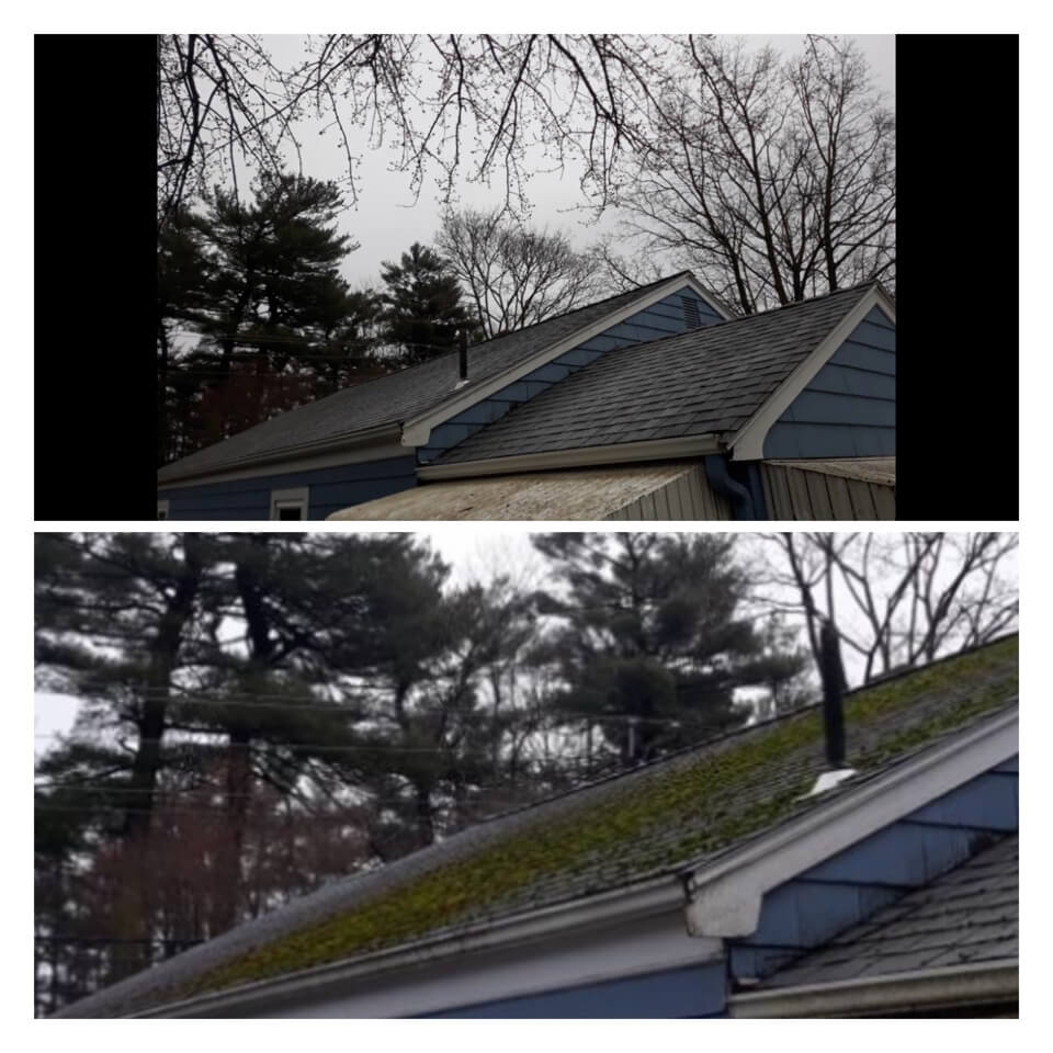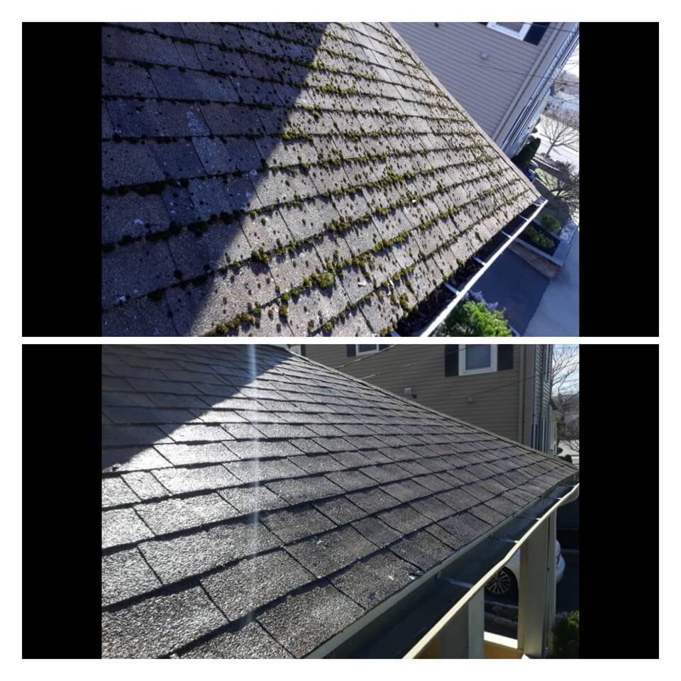 HiCleaners is the most experienced company in Cohasset, MA that deals with roof washing and roof soft washing. All of our employees are trained to recognize precise solution mixing ratios to provide you with the safest and most effective soft washing service. Roofs are a commonly neglected part of a house due to the fact that most people don’t have ladders to access it, so it is very easy to just leave it alone and forget about problems that may start to arise. Just like many home owners, discoloration and small bits of moss on a roof can be overlooked because of the misconception that it is just aesthetic. However, it isn’t just aesthetic, the moss slowly lifts the granules off the shingles which in turn shorten the life of the shingle. The moss also spreads, just like any bacteria if it is left alone for too long, it can quickly become a problem that spirals out of control. Call HiCleaners for a free quote, we only use the most advanced eco-friendly solutions and equipment to make sure the job is done right, for the safety of the employees, your plants, grass, pets, and children.