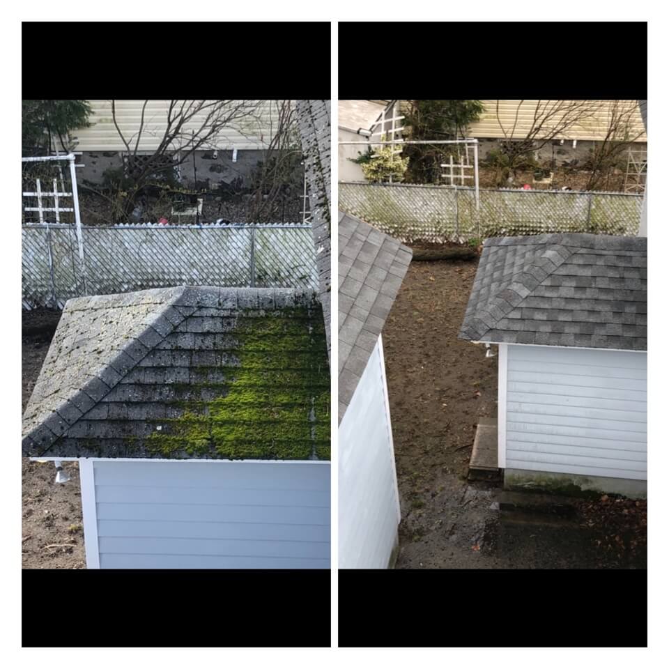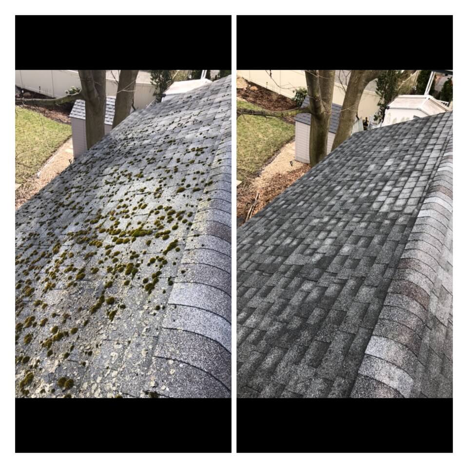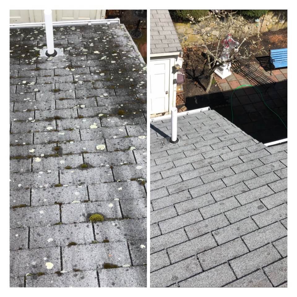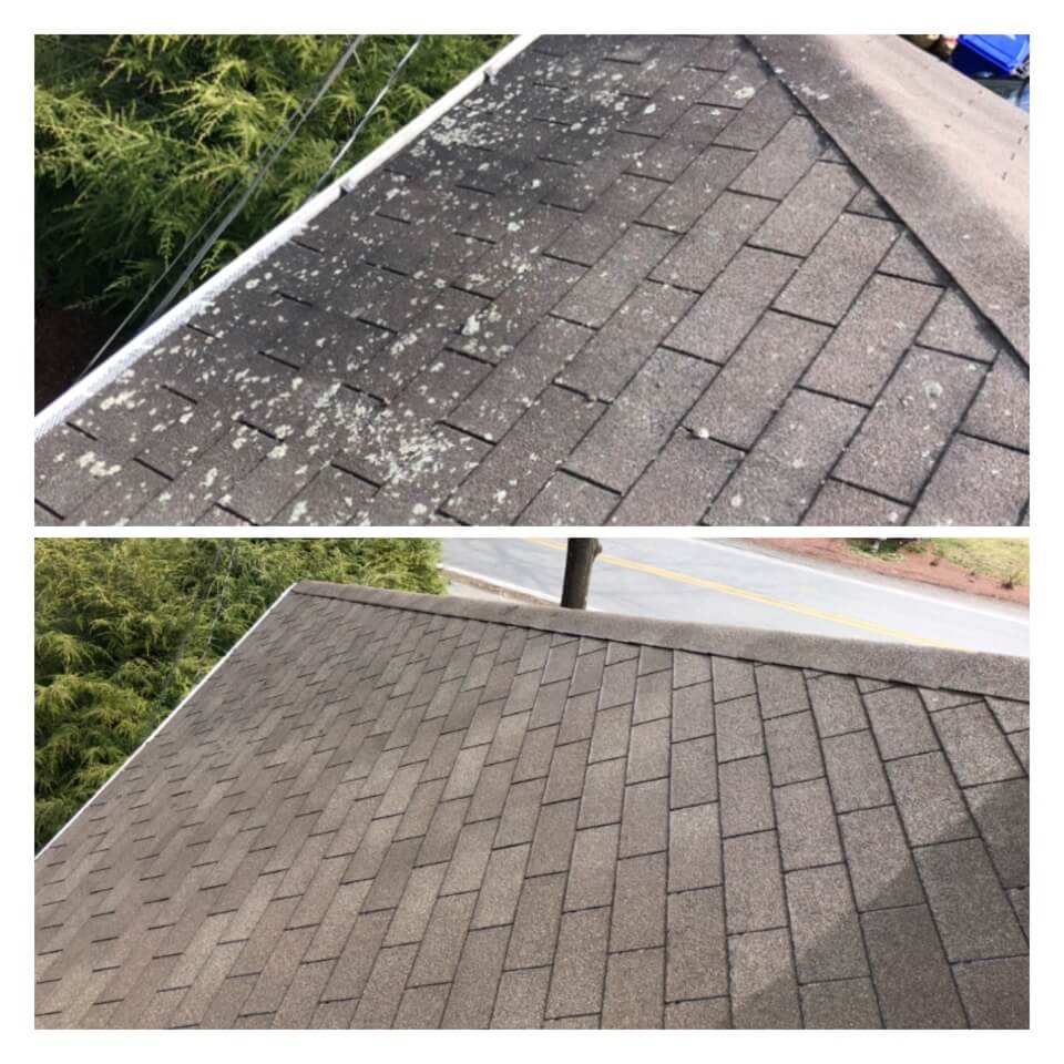 HiCleaners is the most experienced company in Cohasset, MA that deals with roof washing and roof soft washing. All of our employees are trained to recognize precise solution mixing ratios to provide you with the safest and most effective soft washing service. Roofs are a commonly neglected part of a house due to the fact that most people don’t have ladders to access it, so it is very easy to just leave it alone and forget about problems that may start to arise. Just like many home owners, discoloration and small bits of moss on a roof can be overlooked because of the misconception that it is just aesthetic. However, it isn’t just aesthetic, the moss slowly lifts the granules off the shingles which in turn shorten the life of the shingle. The moss also spreads, just like any bacteria if it is left alone for too long, it can quickly become a problem that spirals out of control. Call HiCleaners for a free quote, we only use the most advanced eco-friendly solutions and equipment to make sure the job is done right, for the safety of the employees, your plants, grass, pets, and children.
